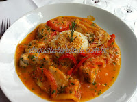 Moqueca de peixe branco com arroz e pétalas de alho grelhado