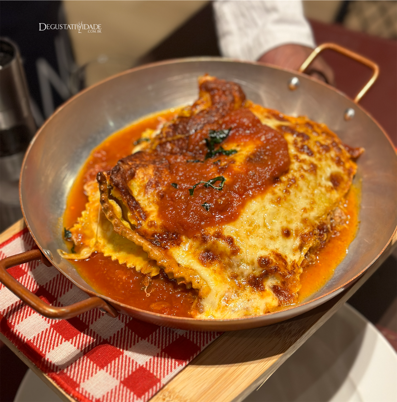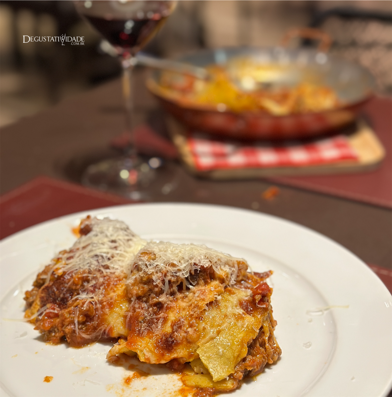 Aquela Lasanha à Bolonhesa feita com massa fresca, artesanal, em camadas de ragu de carne ao molho de tomate, com muçarela para gratinar e formar casquinhas queimadas repletas de sabor,