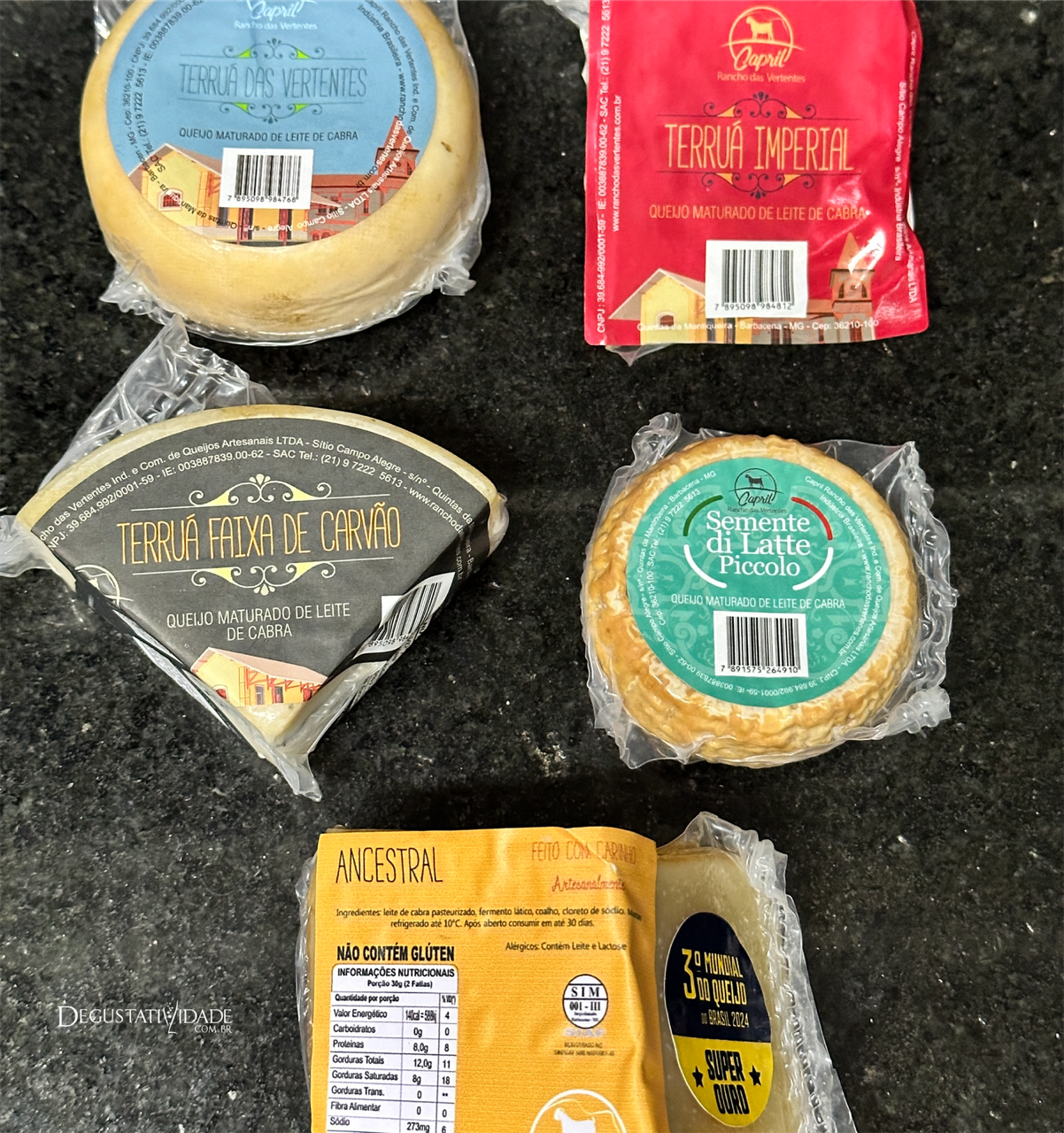 O Terruá das Vertentes (R$ 45 – 250g) segue o modo de fazer do tradicional queijo meia cura de leite cru de vaca, porém feito com leite de cabra. Vendido em pedaços de 200g (R$50), o Terruá Imperia é uma de suas variações com 3 a 6 meses de maturação e pesando entre 3,5 kg a 4 kg.