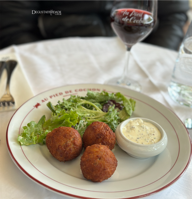 Começamos por uma porção de croquete de porco (11,50€).