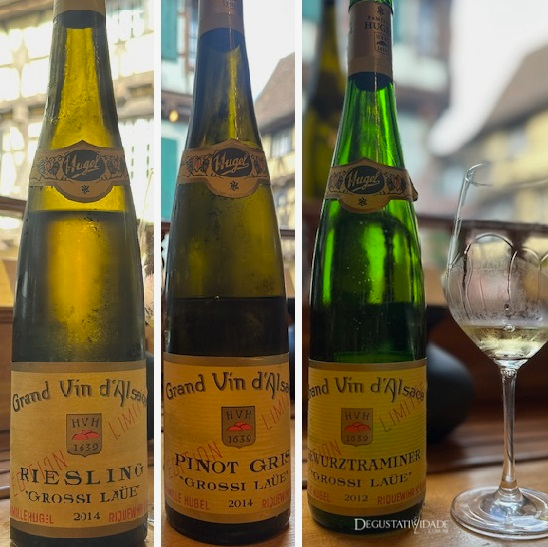 Escolhemos o Riesling Grossi Laüe 2014 (52€) para levar na mala e o Riesling Estate 2020 (27,50€) para tomar em um singelo banco de madeira em meio aos vinhedos de Riquewihr. A Hugel exporta 90% de sua produção e chega ao Brasil através da World Wine.