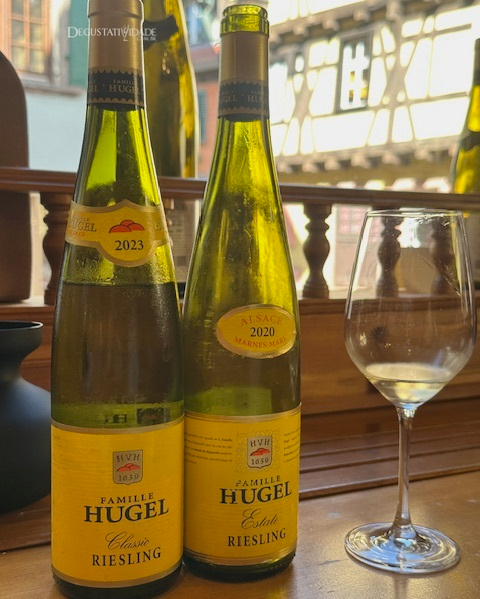 A Famile Hugel et Fils, um dos maiores produtores da Alsácia desde 1639 oferece degustações gratuitas na loja do vilarejo de Riquewihr.
