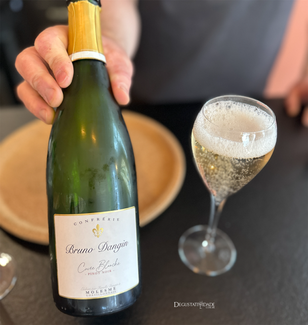 Apreciei esses pratos sublimes com uma taça de crémant de bourgogne (8€), 100% Pinot Noir, do produtor Domaine Bruno Dangin.