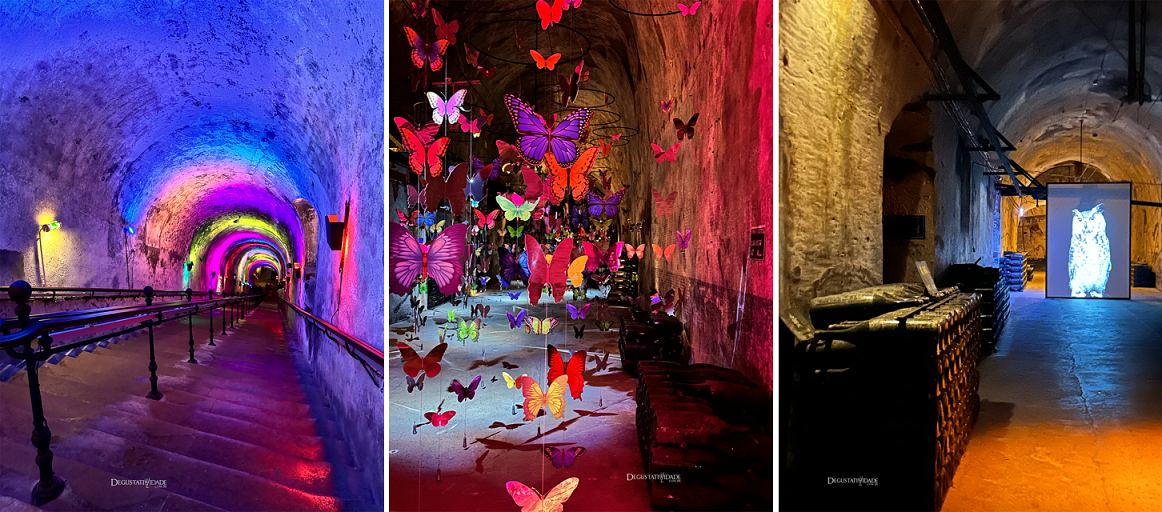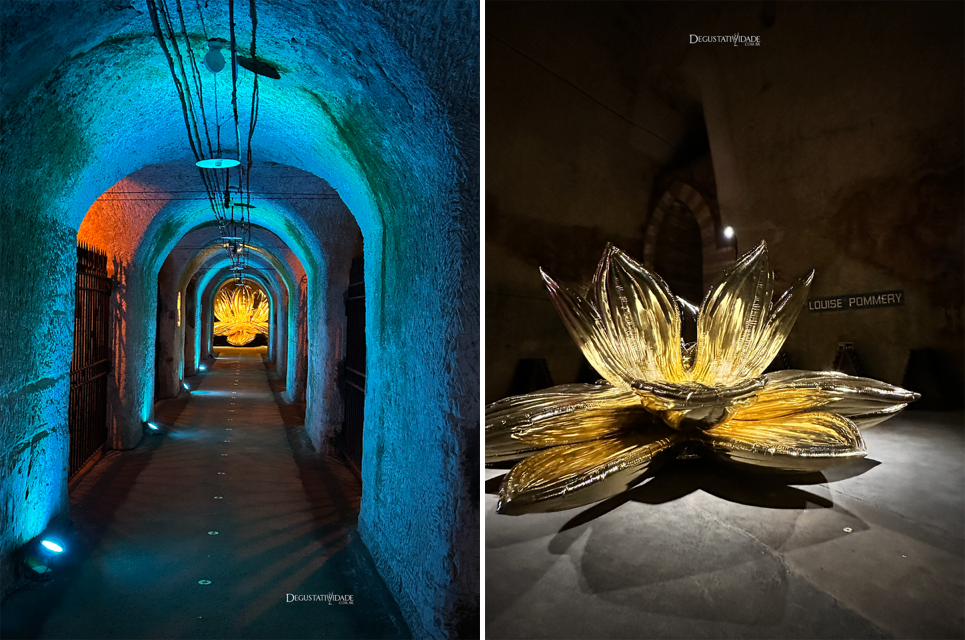 A visita à propriedade Pommery oferece a oportunidade de explorar caves de giz, originalmente pedreiras galo-romanas, transformadas em adegas por Madame Pommery no século XIX, repletas de esculturas em baixo-relevo de Gustave Navlet combinadas à uma exposição de arte contemporânea e por fim apreciar pratos da culinária francesa harmonizados com Champagne.