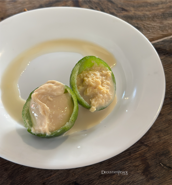 O jiló com queijo (R$ 36,90) é outra iguaria imperdível no Xapuri. O queijo salgadinho derrete por cima do jiló suculento, huummm, amo.