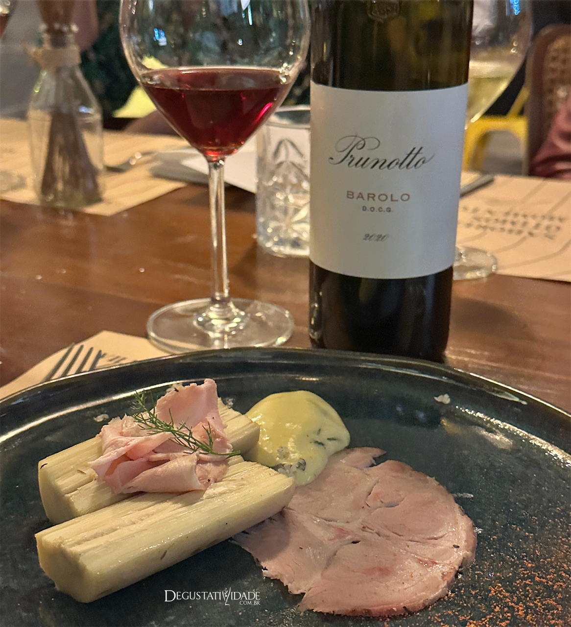 A Nebbiolo, uva mais importante do Piemonte, é cultivada sob neblina, clima frio que traz bastante acidez ao vinho. O Prunotto Barolo DOCG 2020 (R$899) estagia 12 meses em grandes barris de carvalho húngaro com objetivo de privilegiar a característica de fruta vermelha da uva. Um vinho elegantíssimo que ficou um espetáculo com o carpaccio de copa lombo, palmito assado no forno a carvão e bernaise de basílico.