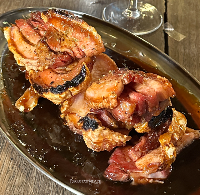 Dentre os deliciosos comes, a barriga de porco é caramelizada (R$68)