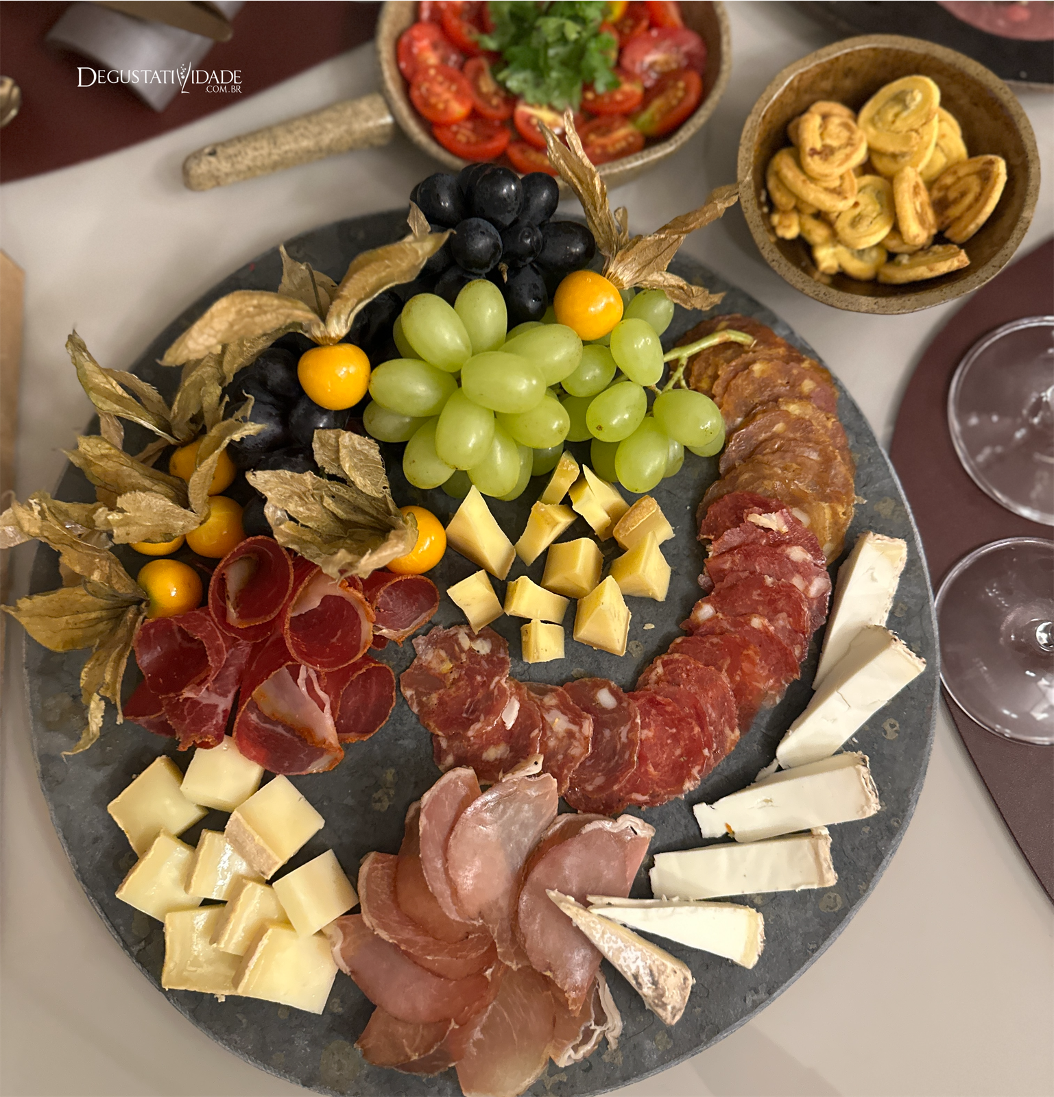 Completamos com iguarias mineiras. Bresaola de carne de sol, peperoni e salaminho da charcuteria Sagrada Familia.