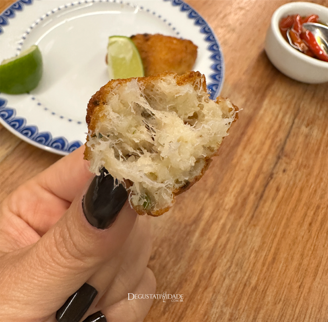 Quase não tem batata, puro bacalhau e uma fritura bem sequinha.
