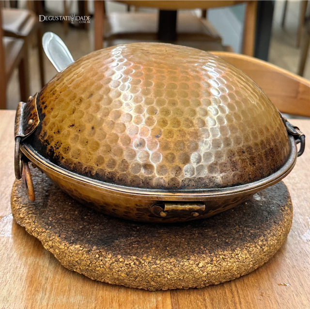 Tipicamente portuguesa, a cataplana é uma panela de cobre com duas partes côncavas que se fecham hermeticamente e cozinham os alimentos no vapor de forma a intensificar sabores e aromas.
