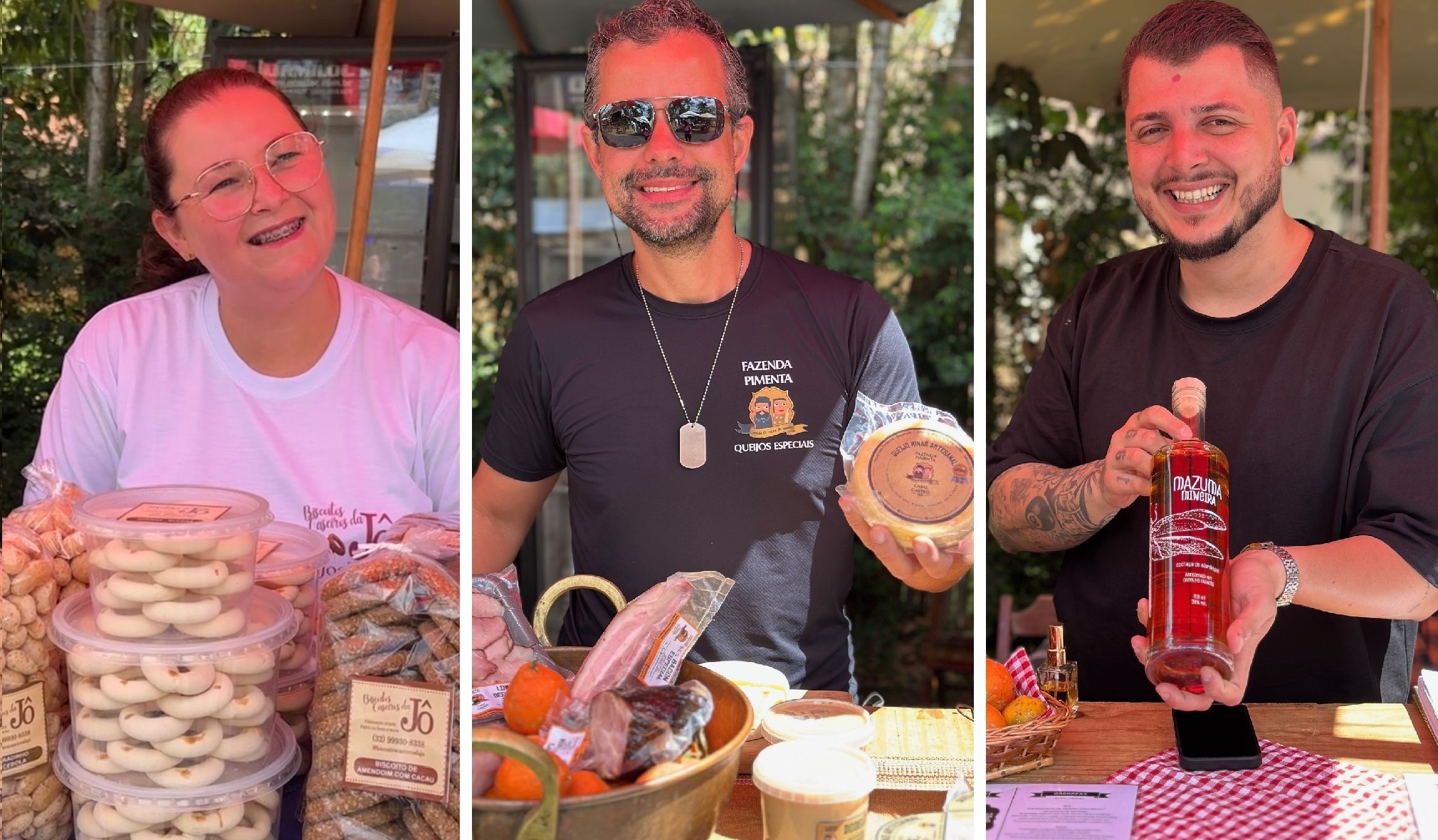 No Espaço Produtos e Produtores, conheci um pouco das riquezas das redondezas de Tiradentes como os biscoitos caseiros da Jô, as cachaças Mazuma Mineira e os queijos, charcutaria e feijões da Fazenda Pimenta.