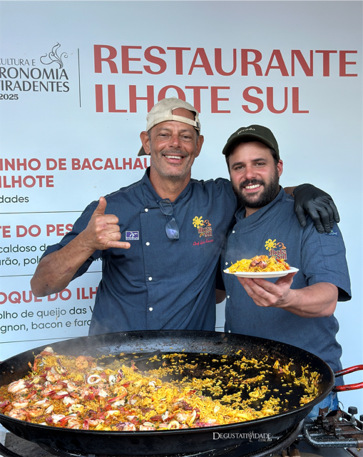 A dupla Rafael Pires e Renato Martins trouxe sabores de Macaé/RJ em um arroz de frutos do mar com camarão, polvo e lula (R$55).