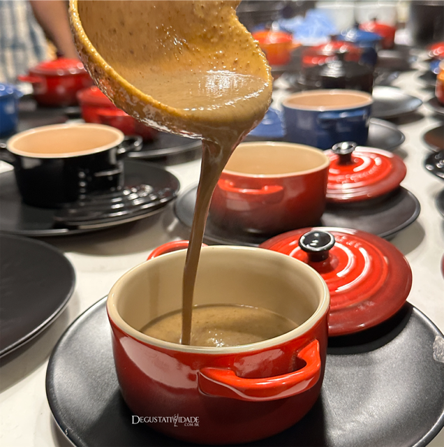 Com base na cozinha genovesa, o nhoque ao pesto foi outro prato do menu, além do camarão in guazzetto e polenta de bacalhau.