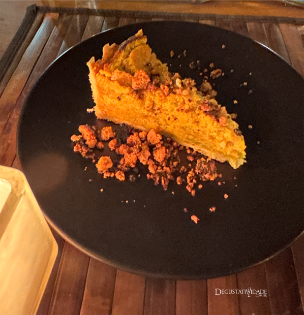 Amei a sobremesa, uma cremosa torta de abóbora com crumble de amaretto.