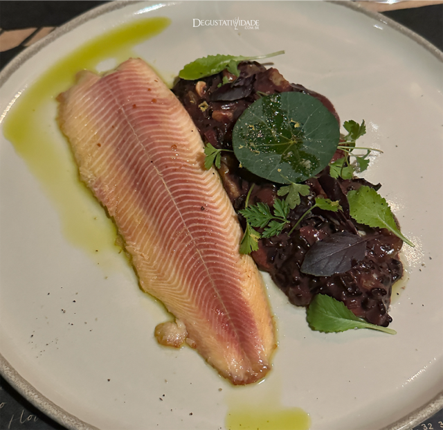 ou o arroz negro cremoso, castanhas, frutos secos e truta defumada, nem sei dizer o mais saboroso.