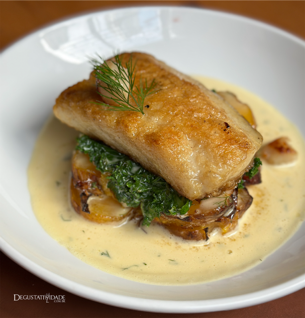 A brasa agrega muito sabor também aos peixe, a exemplo da pescada amarela com vieiras, baroa e a acelga chinesa pak choi é envolvida ainda por um saborosíssimo molho de tucupi amanteigado com ervas finas (R$148).