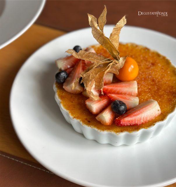 O clássico creme brûlée de baunilha com frutas vermelhas (R$45) está de volta.