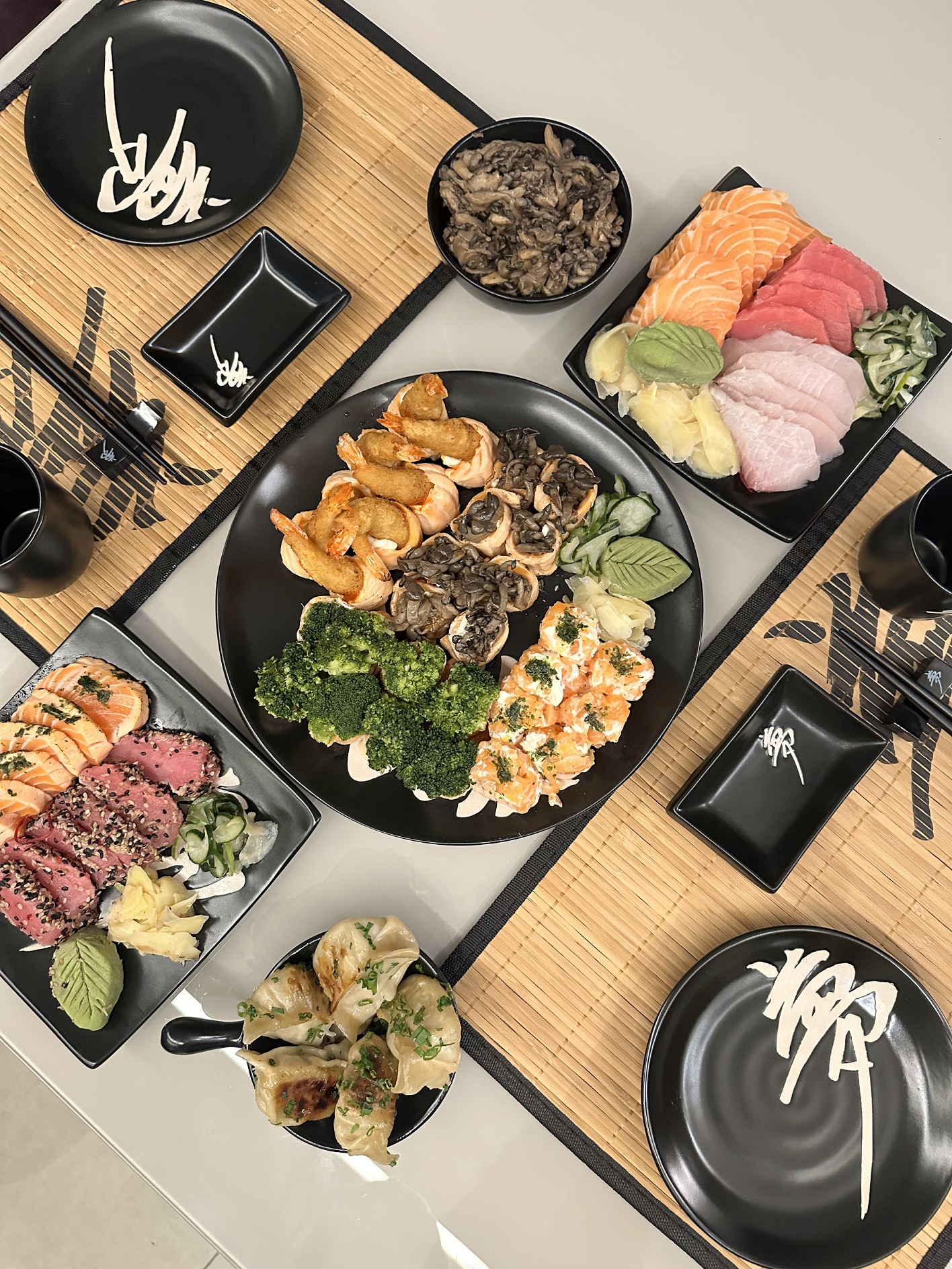Peixes sempre frescos e apresentação cuidadosa em lindas caixas para delivery. Da até para servir direto nas embalagens, mas eu não resisto em arrumar a mesa.