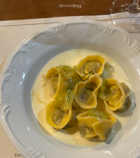 Com toda sua elegância culinária Yves Saliba serviu uma tortellini de rabada com creme de queijo do serro e picles de maxixe.