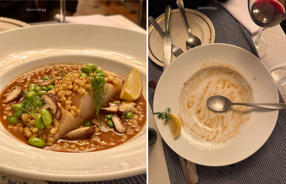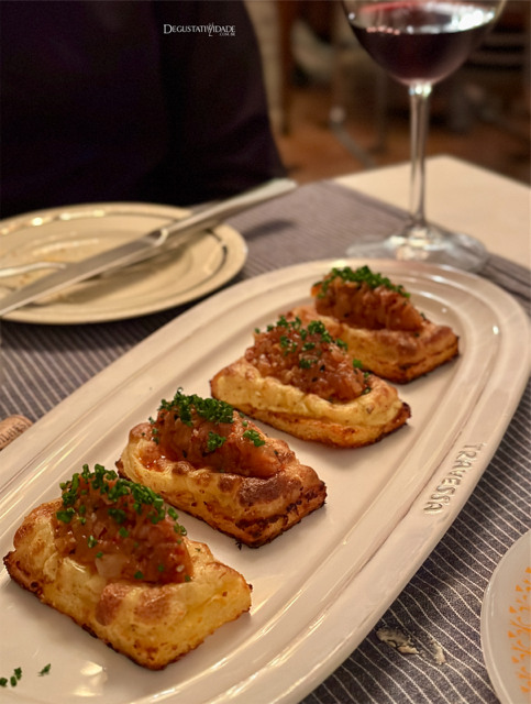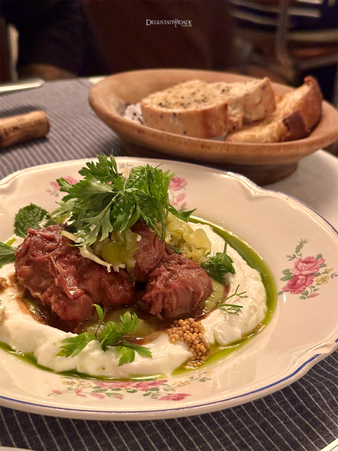 Adorei reviver a bochecha de porco com boursin e molho de ervas e amendoim (R$78) e também a tostada de broa, que agora se apresenta com tartar de atum (R$65).