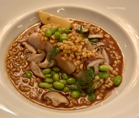 Dentre as atuais criações da Bruna, o robalo com jus de porco, edamame, fregola e cogumelos (R$130) está espetacular. A posta alta do nobre peixe se desfaz em lascas, regada por uma glace densa e extremamente saborosa. Outra novidade é o churros de polvilho com creme de queijo e paçoca de carne de sol (R$55).