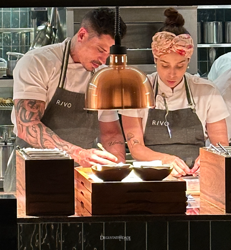 “Eu sou mineira, morei na Itália, Max é argentino e mora em Minas Gerais há muitos anos, então a gente quis ter uma liberdade de criar o menu de acordo com a nossa bagagem cultural”, conta Alethéa Ruckert sobre a proposta do Rivo. Alethéa descobriu sua vocação na gastronomia por meio de cursos feitos como hobby, passou pelo no Maní (SP), da chef Helena Rizzo, estudou no Basque Culinary Center, na Espanha e trabalhou por cinco anos no três estrelas Michelin Osteria Francescana, do chef Massimo Bottura, na Itália. De volta ao Brasil, conheceu Max no programa The Taste e realizaram o sonho de abrirem juntos um restaurante. Max formou-se em gastronomia pelo Senac e teve experiências em restaurantes renomados como Sucre (Buenos Aires), Pacato (BH), Tragaluz (Tiradentes) e Evvai (SP).
