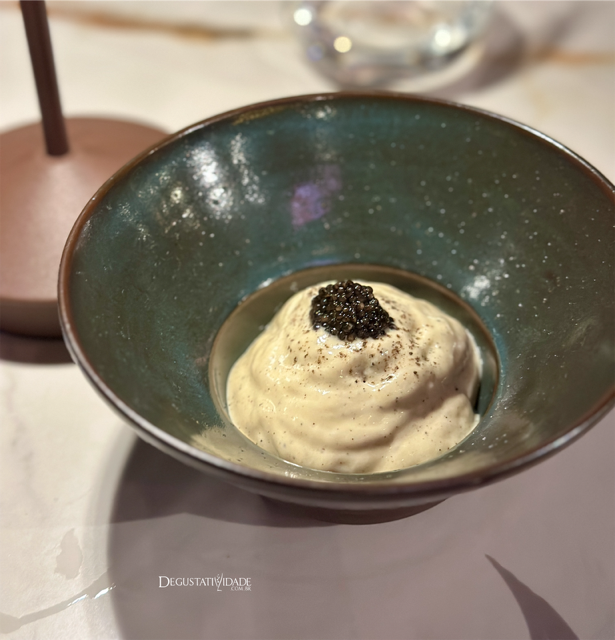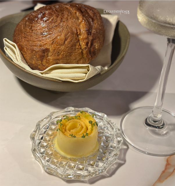O atendimento polido e cuidadoso começa com uma taça de espumante, cortesia logo na entrada. No couvert (R$36), a manteiga de anchova chega em forma de flor para ser apreciada com o brioche, tudo feito na casa, assim como os demais pães, massas, fermentados e sorvetes.