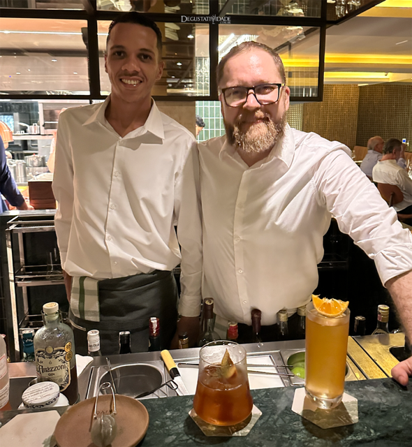 Coquetéis elegantíssimos e equilibrados foram desenvolvidos especialmente para a carta do Rivo pelo mixologista Xandão Loureiro, e são muito bem executados pelo bartender Honório Gonçalves.
