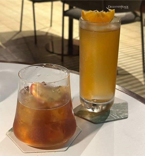 Delirei com o 1822 (R$54), que leva Cachaça Áurea Custódio 5 anos, Jerez, cajuína e limão cravo. Outro drink excelente é o 1810 com pêssegos tostados combinados ao Whiskey Lamas Brasilides, vermute, Cynar, Fernet Branca (R$57).